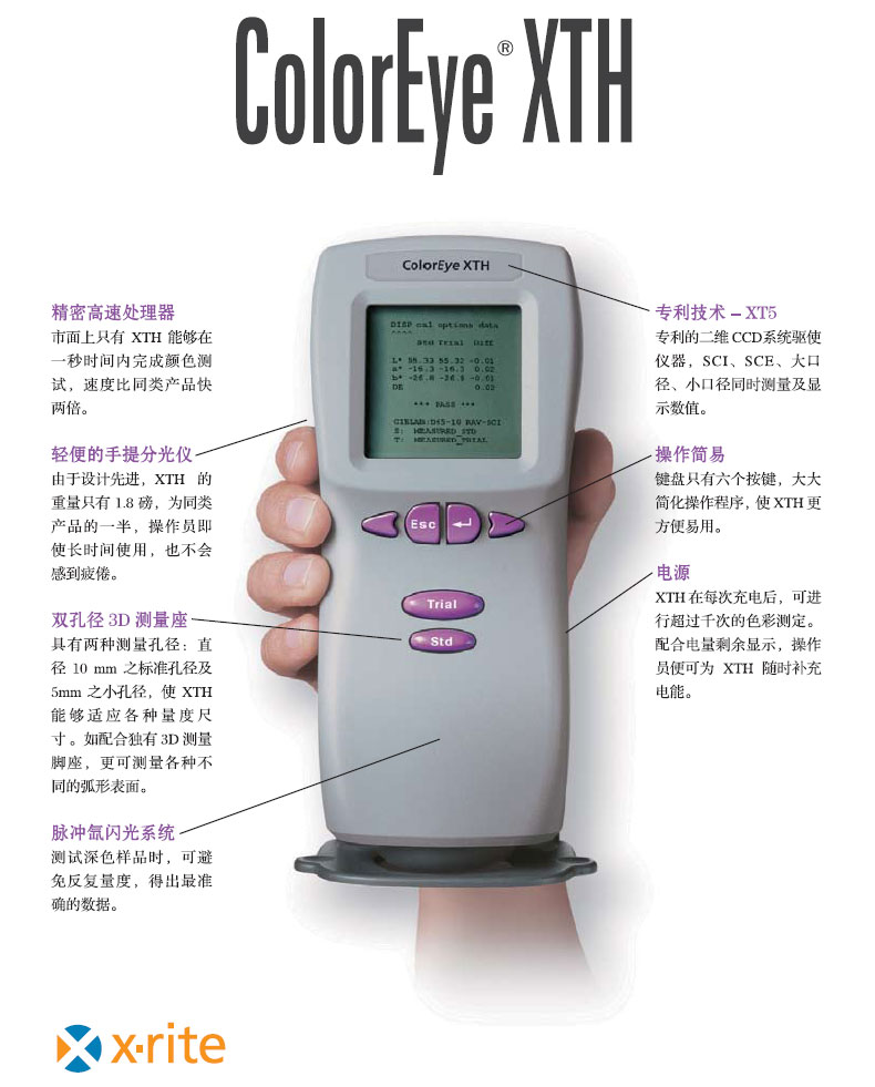 Color-Eye XTH手提式电脑色差计、ColorEye XTH手提分光光度仪权威的印刷色彩解决方案;无比的仪器台间差协议;极优良的适应性